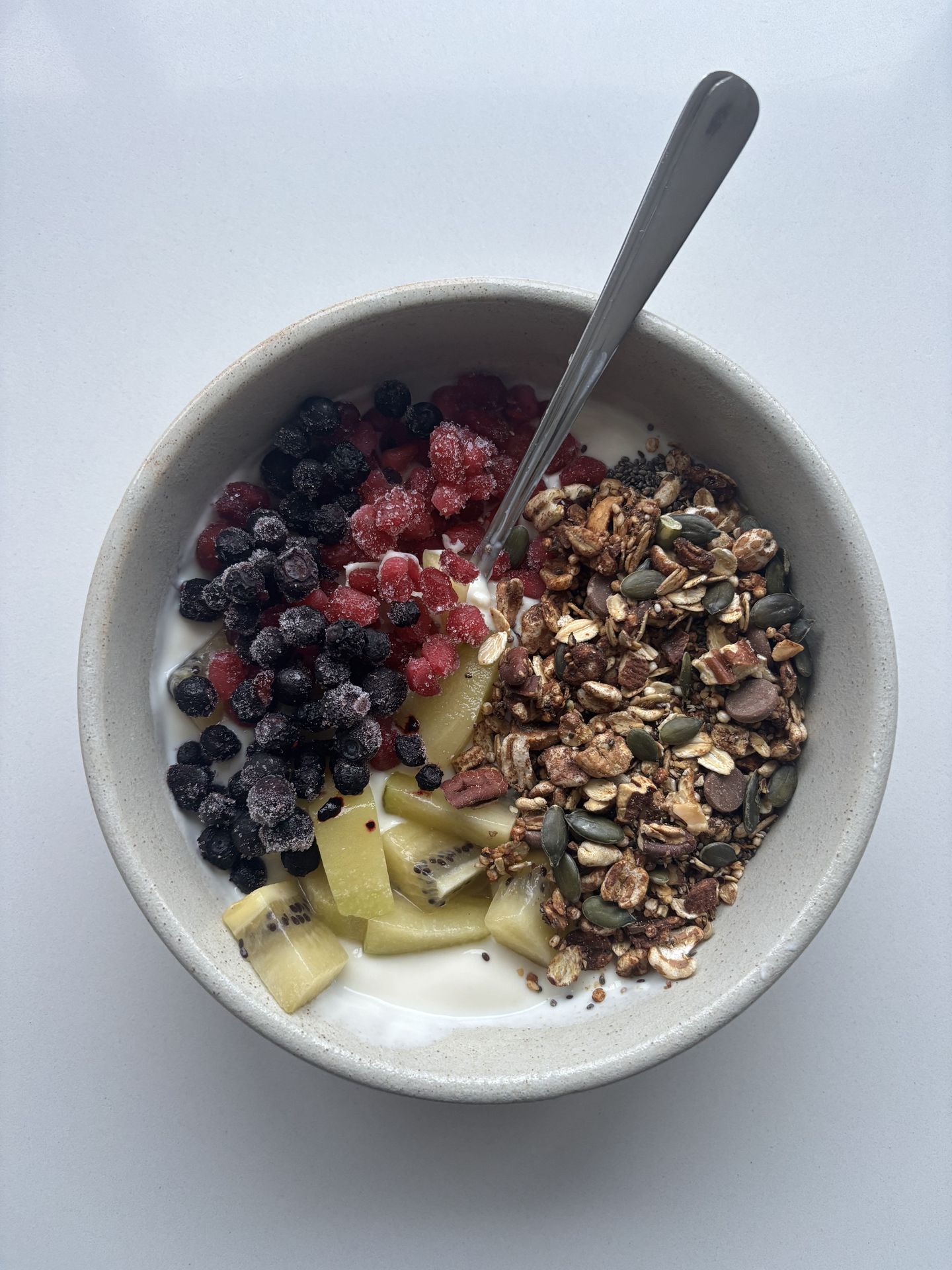 Mix naar keuze of al de toppings naar samen (mix and match), samen met yoghurt en vers/diepvries fruit.